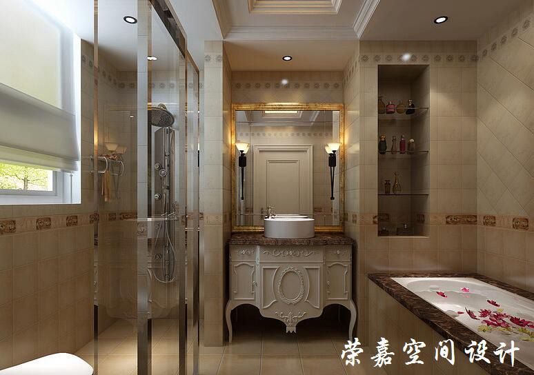 衛(wèi)浴間簡潔而凝練,淡黃色的地磚以古舊的色調(diào)和復古般的質(zhì)地,營造了一個大地般的田園樸素;淋浴區(qū)和浴缸區(qū)因人為宜,滿足日常生活的所需;新古典曲線感的盥洗臺和壁式臺燈無疑更顯尊貴。