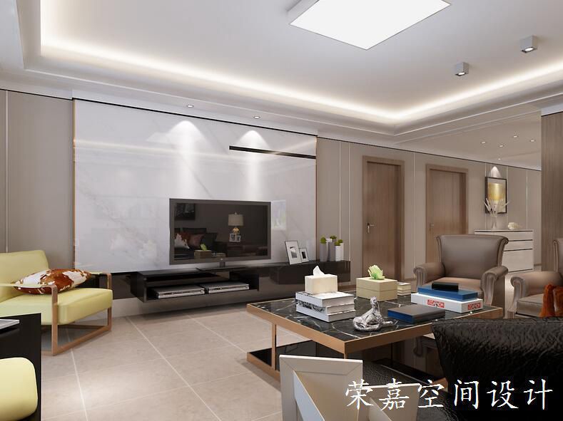 客廳的空間緊湊而有節(jié)奏感,簡(jiǎn)約的家具采用不同的材質(zhì)和色調(diào)搭配出和諧的沉穩(wěn)情調(diào);灰褐色的背景墻面上,白色理石電視墻飾以金色勾邊,與黑色條幾柜演繹空間里的時(shí)尚質(zhì)感。