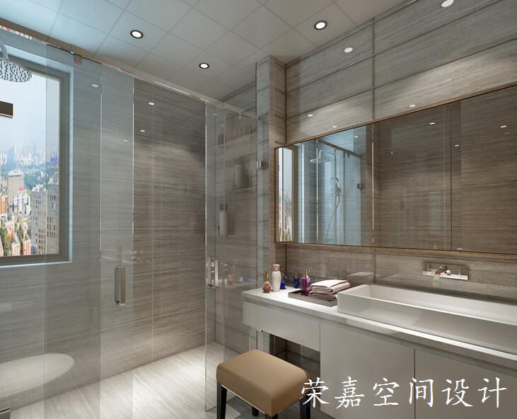 灰色理石衛(wèi)生間簡(jiǎn)潔大氣,透明的隔斷玻璃不但分隔干濕區(qū)域,更與浴室鏡在室內(nèi)外光線下,輕盈了空間質(zhì)感;白色的盥洗臺(tái)一側(cè)布置了梳妝臺(tái)的位置,便于主人日常起居使用。