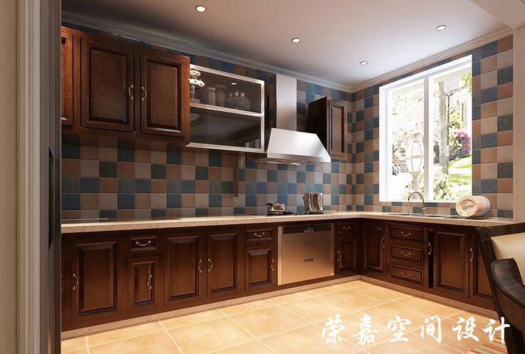 淡黃色的地磚令實(shí)木定制櫥柜的莊重少了許多,設(shè)計(jì)師巧妙地通過(guò)彩色墻面來(lái)表達(dá)美式田園所具有的明快和清雋,令整個(gè)廚房的基調(diào)活躍了不少,設(shè)計(jì)就是將實(shí)用與美觀兼容起來(lái),不能缺少任何一個(gè)。