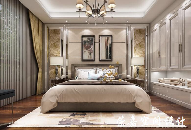 臥室以白色為主,衣柜與墻體屬于同一立面,規(guī)整之間更顯清雅和實用;背景墻以幾何面狀感來豐富空間,愈顯典雅;兩幅抽象畫與素色床品構(gòu)成素簡藝術(shù),溫馨之中帶著靜和,讓亮白色地毯注入層次美。