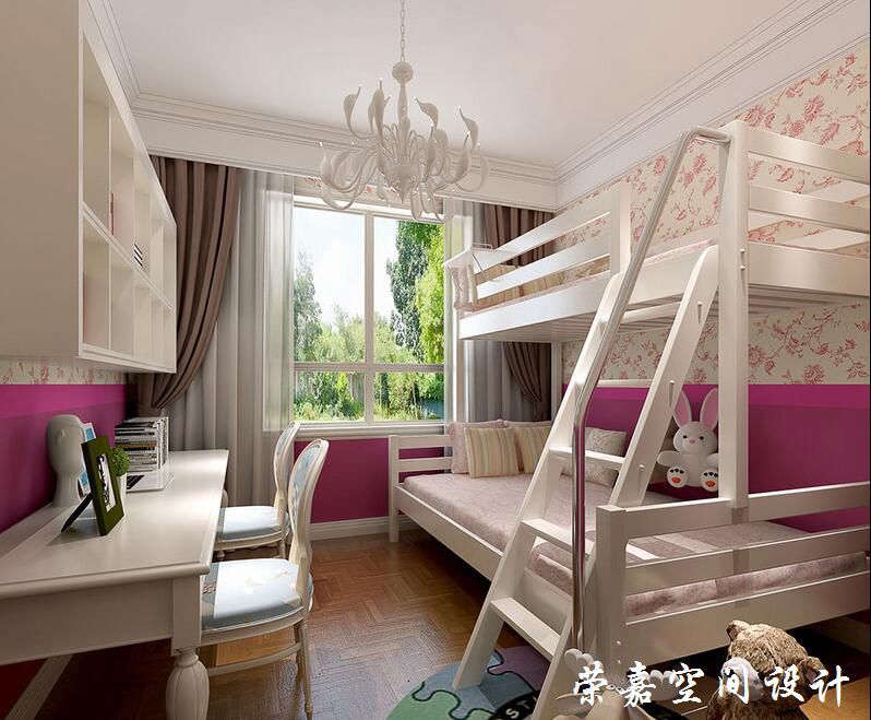 淺粉色碎花壁紙與玫粉色底邊形成空間的整日輪廓,白色家具更讓臥室溫馨恬靜。
