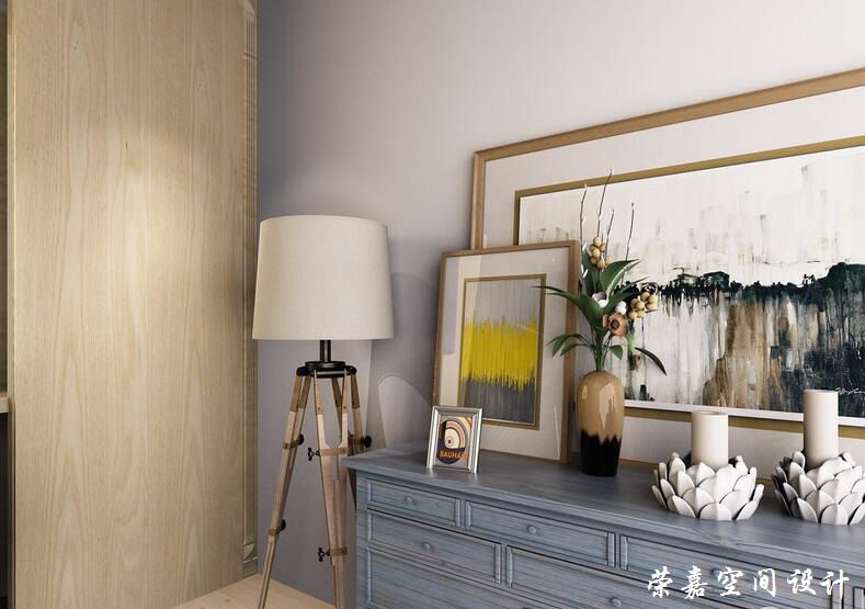 進(jìn)入臥室的入口區(qū)被優(yōu)雅的格調(diào)多吸引,設(shè)計(jì)師并使用沒有過多的家具、飾品進(jìn)行雕琢,而是通過灰藍(lán)木邊柜、中式山水畫和筍根燭臺(tái)營(yíng)造生活的溫情,簡(jiǎn)約落地?zé)羰刈o(hù)在這里的安謐和小愜意。