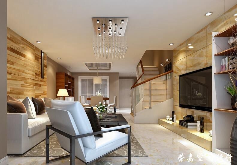 墻面與沙發(fā)、餐椅色系呼應(yīng),大面積深駝色彰顯空間的成熟溫雅。墻上黑白扣線增強(qiáng)空間立體感,印花地毯與茶幾、電視柜形成色調(diào)反差對比,小面積的黃、藍(lán)色趣味營造。