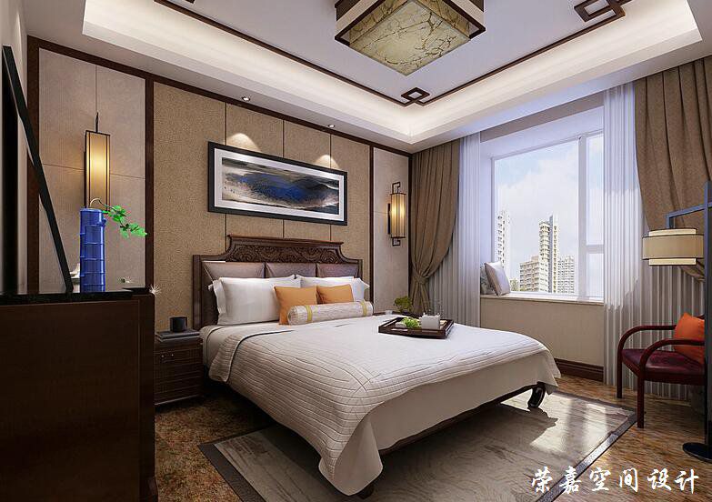 臥室的床頭采用溫暖中性的軟包對稱拼接,搭配淺色系的柔軟床品,氤氳出端莊沉靜;燈飾古樸寂然,與同樣厚重敦和的木質(zhì)家具,彰顯出中式的悠悠古韻。