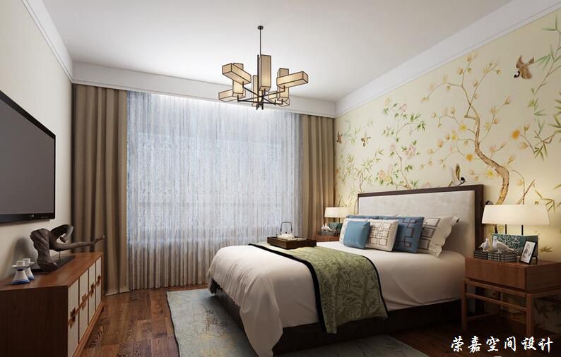 極具古典情致的臥室里,栩栩如生的花鳥(niǎo)壁畫(huà)賦予了空間清雅脫俗的恬淡韻味;溫厚的實(shí)木家具素樸的搭配其中,桌上動(dòng)物擺件與壁畫(huà)虛實(shí)相映,悠然閑適的休憩氛圍呈現(xiàn)出來(lái)。