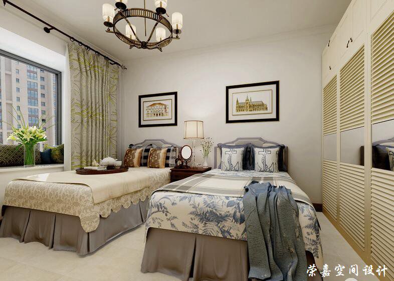 設(shè)計(jì)上放棄使用繁復(fù)夸張的設(shè)計(jì)語(yǔ)言,以穩(wěn)重為的設(shè)計(jì)理念來(lái)突顯空間的實(shí)用性;灰藍(lán)色花卉床品和駝色搭配出天然的質(zhì)樸,淺綠色草紋窗簾和飄窗上的綠色菱形靠墊、鐵藝吊燈濃重的田園風(fēng)更顯安謐。