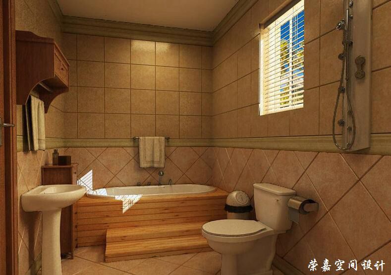 衛(wèi)浴間利用大量的仿古磚來(lái)打造一個(gè)原始、粗狂的空間,木架圍筑起來(lái)的浴缸野性十足,真實(shí)地反應(yīng)出生活樸拙。
