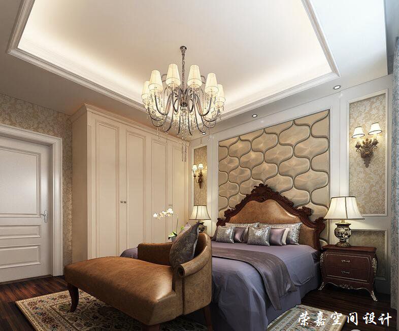 臥室以對(duì)稱為設(shè)計(jì)要點(diǎn),講究和諧,鐵藝壁燈和曲線感吊燈帶著輝煌與貴氣,讓你沉醉在奢華里;幾何感的背景以質(zhì)感與實(shí)木鑲金家具、咖色皮質(zhì)沙發(fā)碰撞出復(fù)古,繁華地淺色地毯中和著用色,沉穩(wěn)得體。