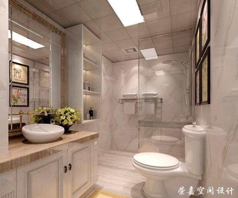 灰白理石墻面上,紋理如水墨暈染,帶著隨性肆意的意味;盥洗臺(tái)臺(tái)面與浴室鏡框呼應(yīng),加上點(diǎn)綴的掛畫(huà)及地毯,打破了空間上的單調(diào)感;壁龕式懸掛格設(shè)計(jì),便于日常物品的拿取。