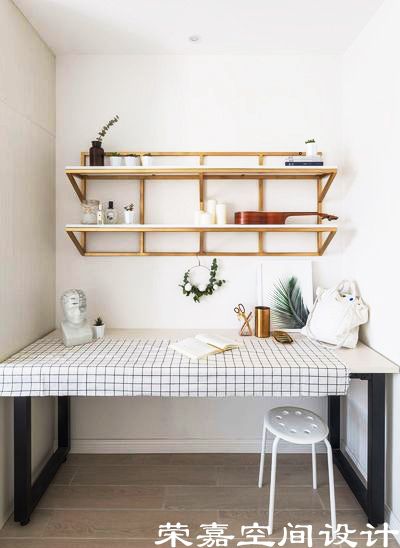 怎么樣,是不是充滿了小清晰的氣質(zhì)。木質(zhì)置物架和宜家買來的桌子。配上小清新標配的格子桌布。