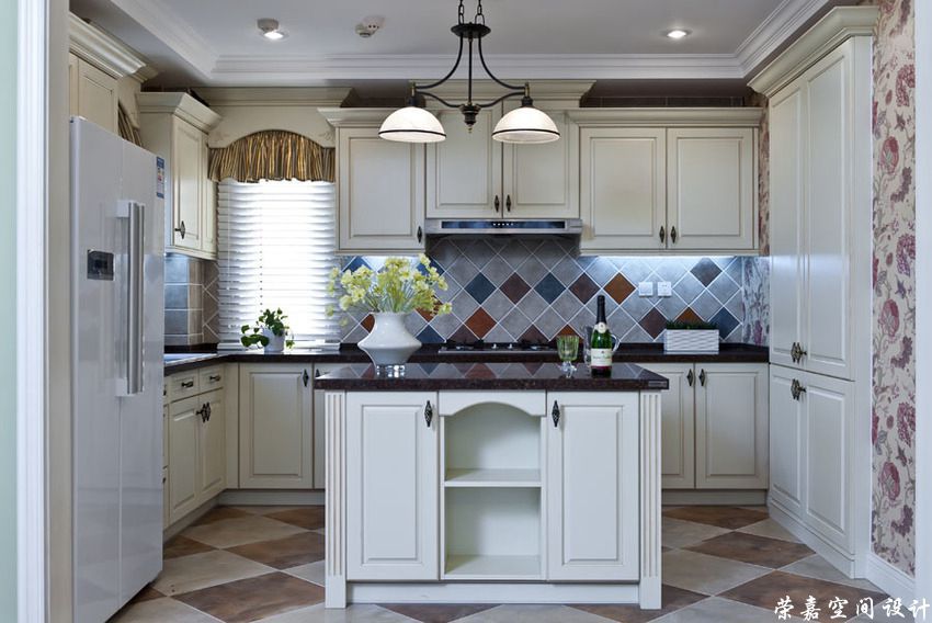 在廚房和衛(wèi)生間上設(shè)計師充分運用了地中海風(fēng)格的棱型幾何圖案,地板及墻面上通過不同角度的組合拼結(jié),形成棱型圖案效果。