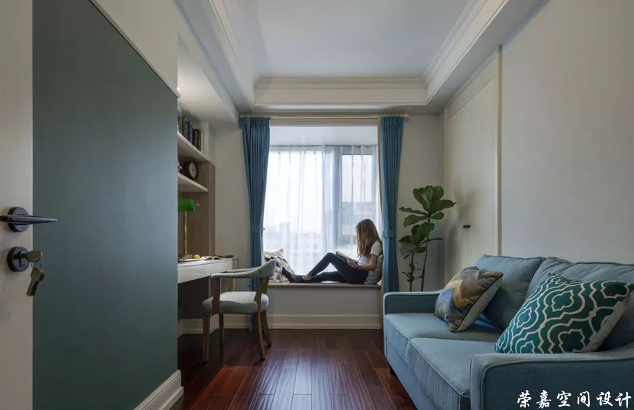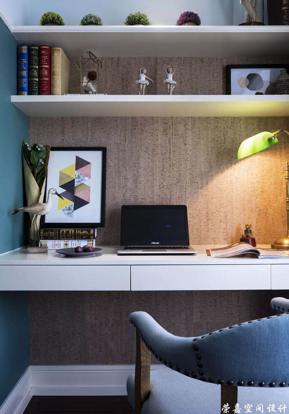 書 房▲米色的空間格局,搭配沉靜的深藍(lán)色,讓整個書房安靜下來。以平靜的內(nèi)心來面對一天的工作與學(xué)習(xí)。