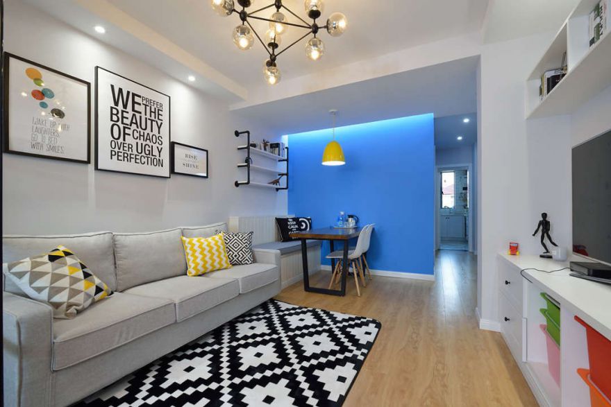 “軌道燈增加過道光線,也將過道和客廳區(qū)分開”。