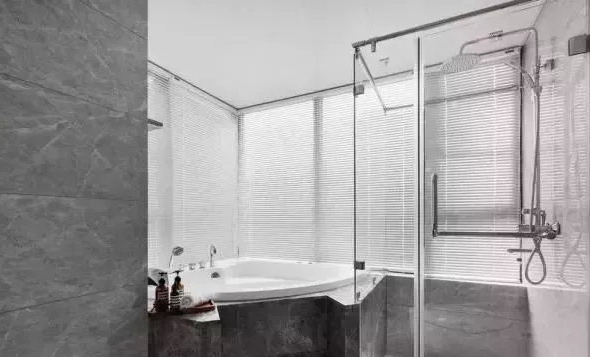 這是主臥衛(wèi)生間,最大的特點(diǎn),是空間大,采光好,看看淋浴房里面,整個(gè)都是窗戶,所以絲毫不擔(dān)心衛(wèi)生間太潮濕。衛(wèi)生間里面,裝了嵌入式浴缸,還裝了玻璃淋浴房,功能齊全,還干濕分離,設(shè)計(jì)效果上,也合理實(shí)用大氣,真心完美。