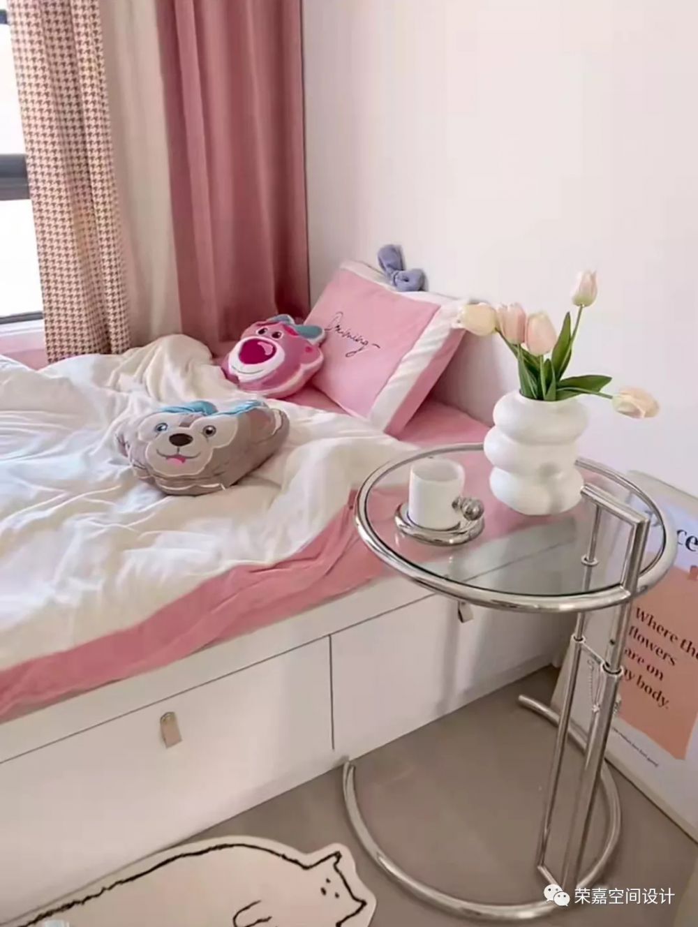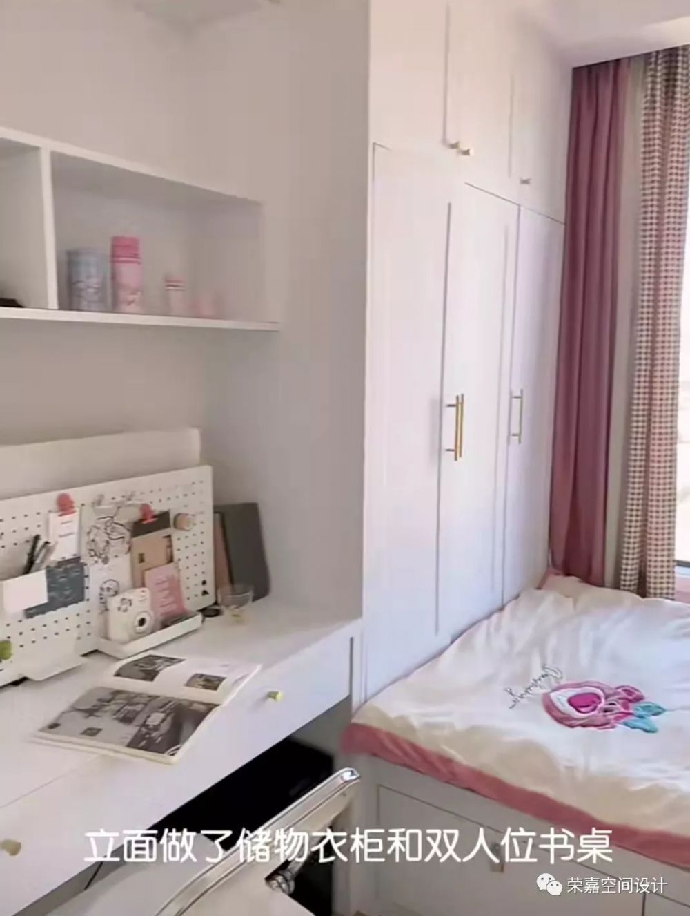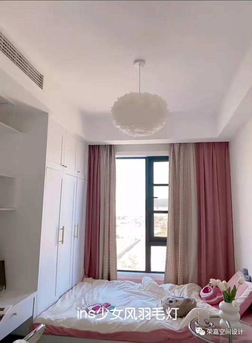 榻榻米房選擇了當(dāng)下比較流行的ins少女風(fēng),為了充分利用空間,立面做了儲物衣柜和雙人位書桌,isn風(fēng)的羽毛燈和透明邊幾,給整體提升了氛圍感,可愛可抵歲月漫長,溫柔又治愈的榻榻米臥室。