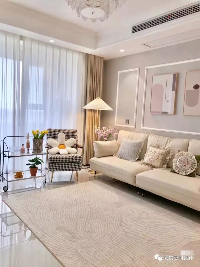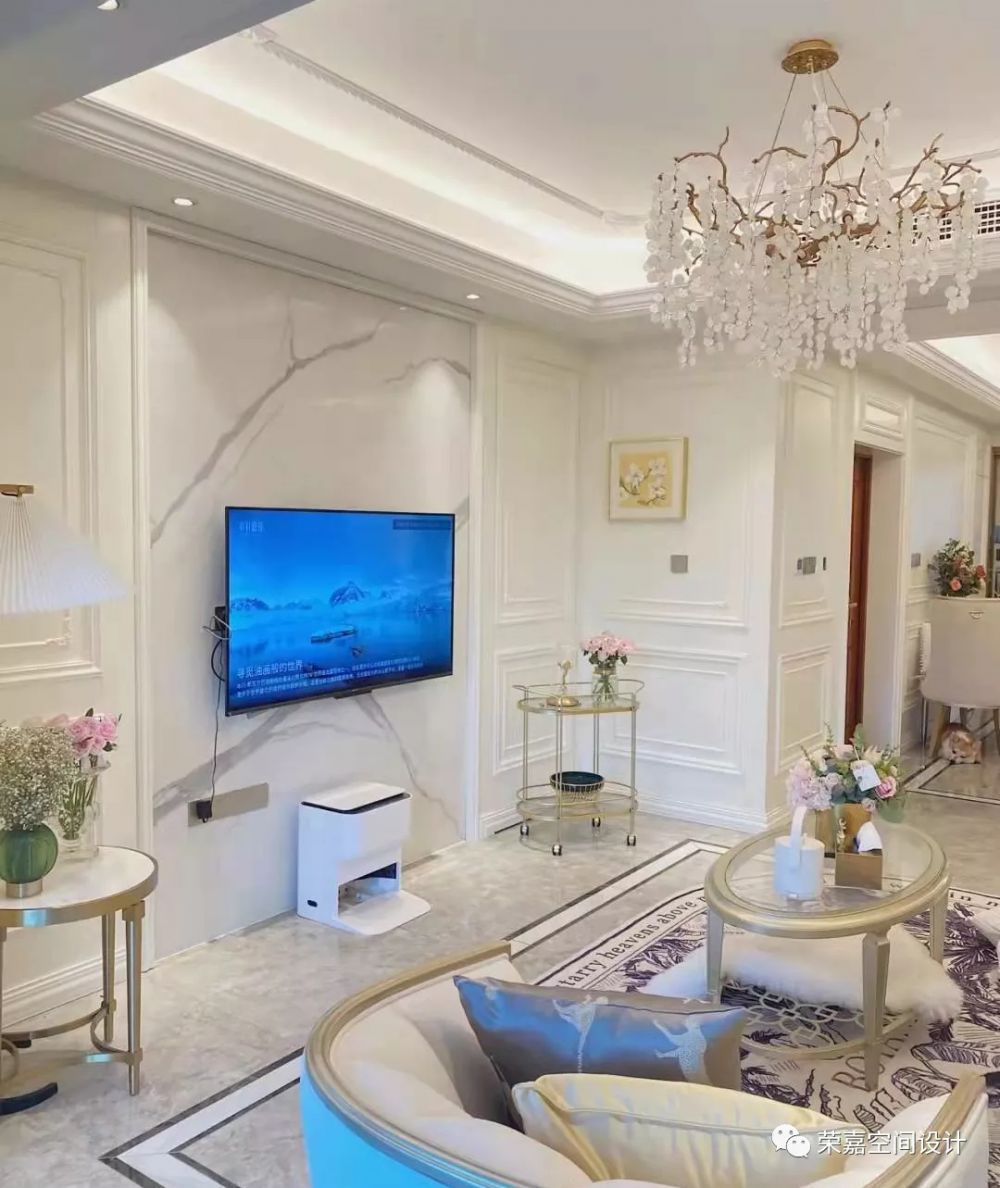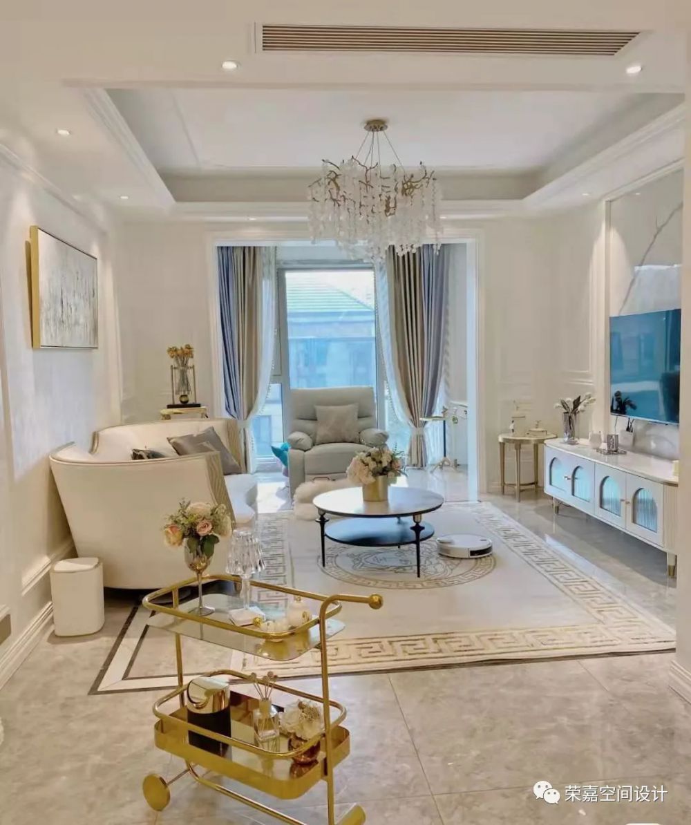今天榮嘉小編給大家?guī)砹艘惶祝?32平的法式輕奢風,整體奢華大氣,全屋通鋪灰色地磚,方便打理。軟裝選擇淺色家具,視覺上大大增加了房子的空間面積。戶主沒有選擇全屋無主燈的設計,而是每個房間都選擇了水晶吊燈,雖然看著空間沒那么大,但是法式氛圍感瞬間拉滿了!