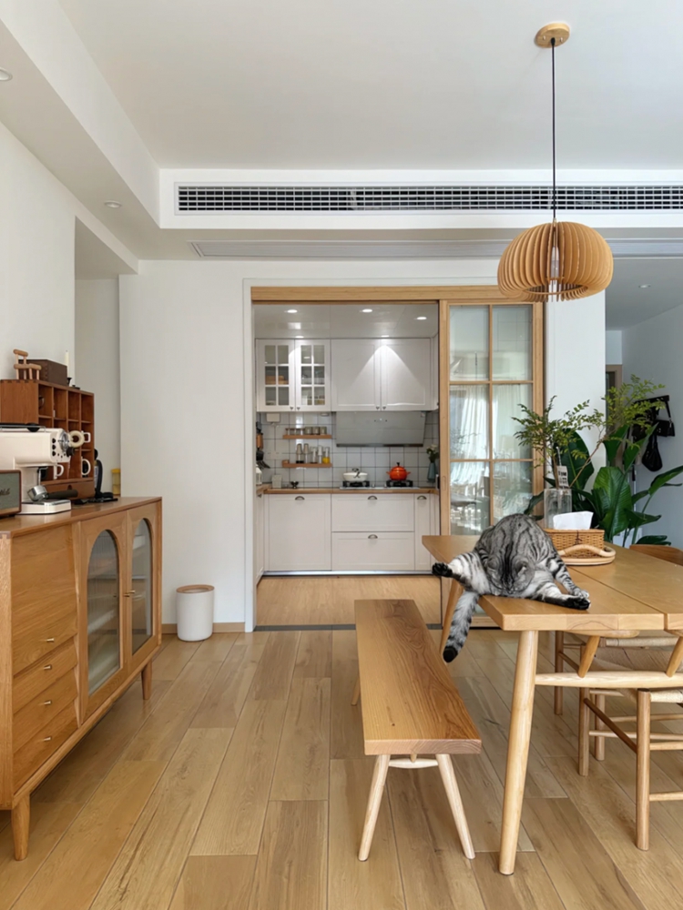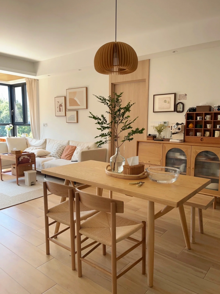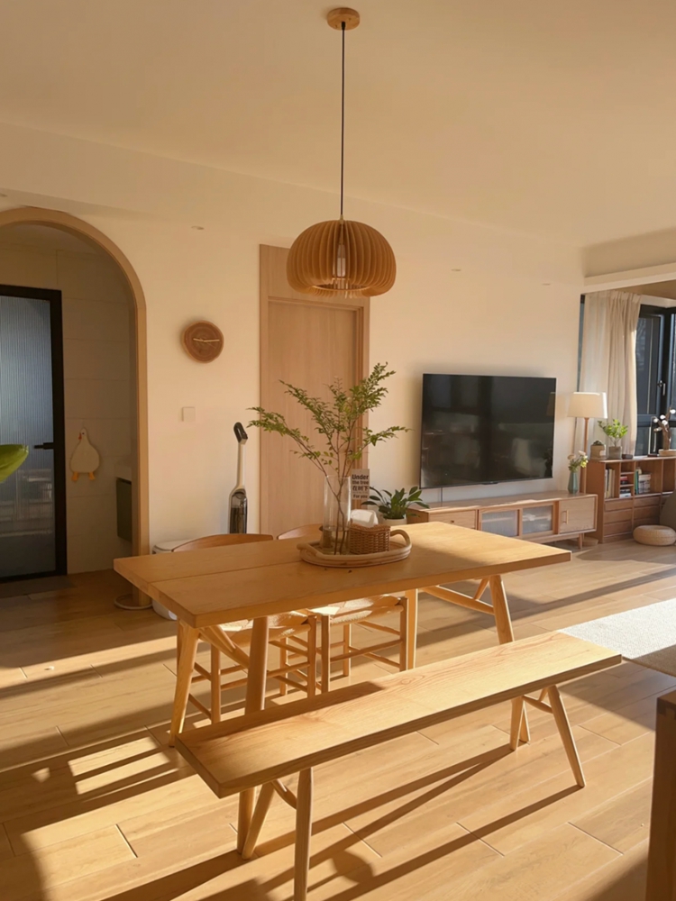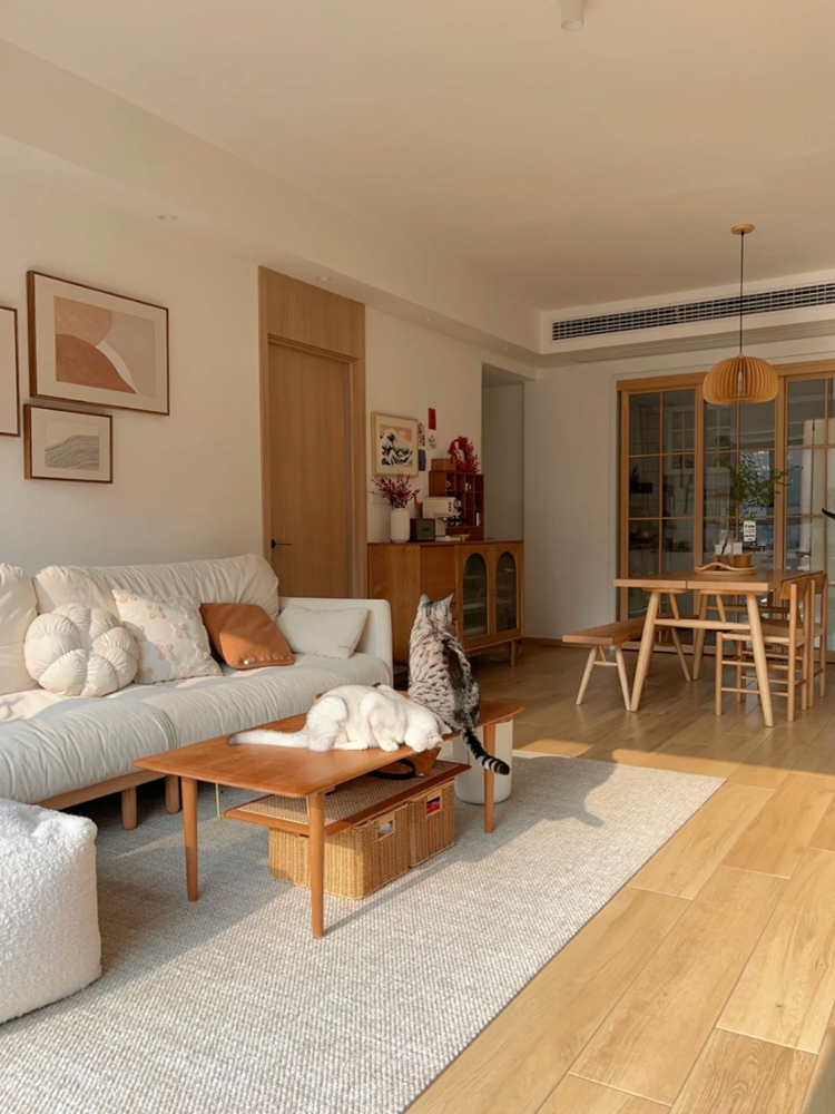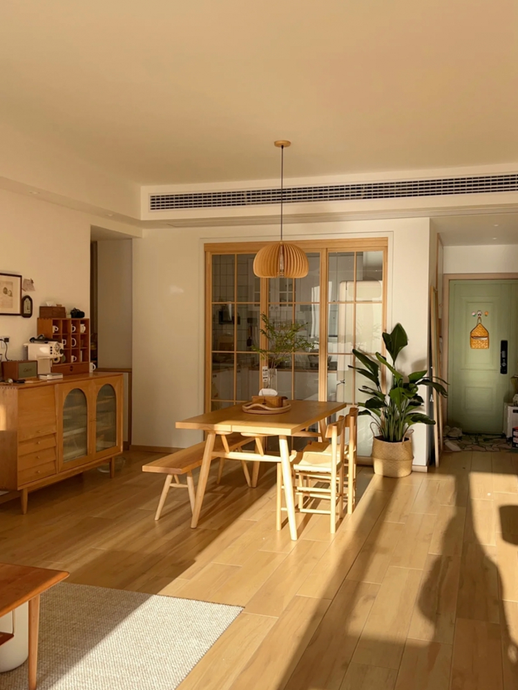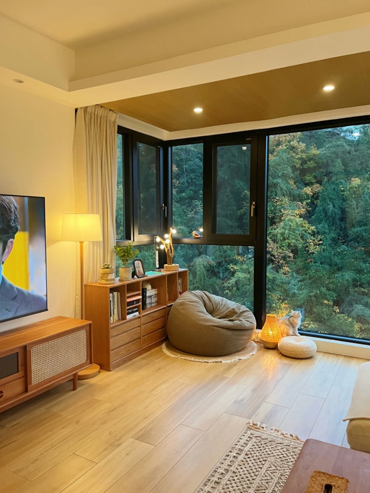 地面:木色地板是原木風的靈魂呀,選的是木紋磚,耐造好打理。