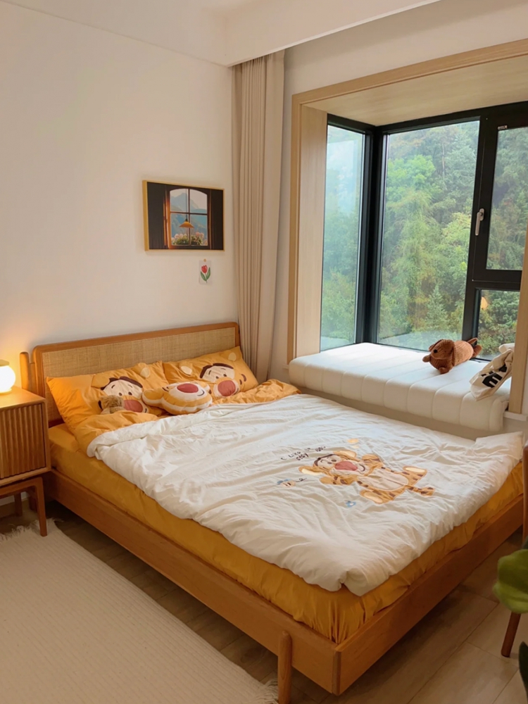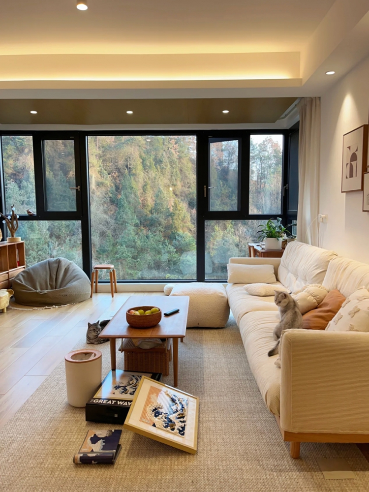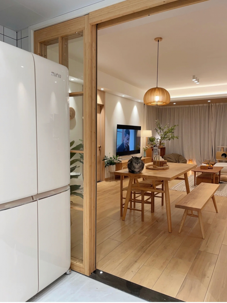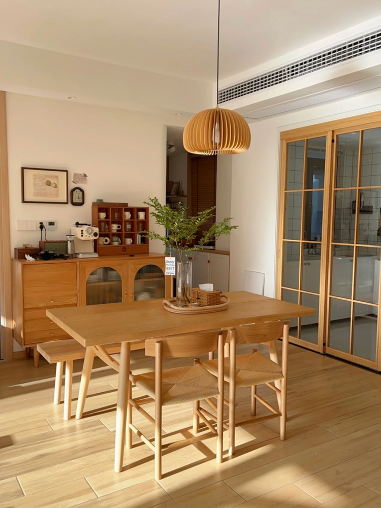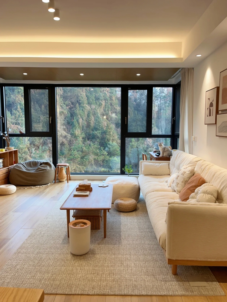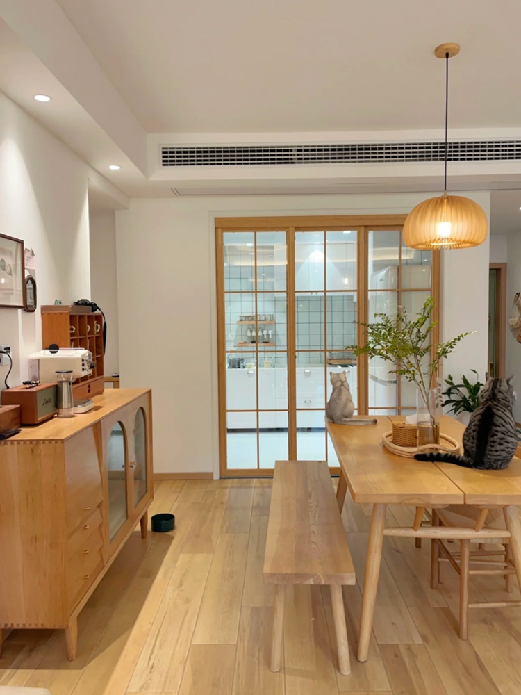 地面:木色地板是原木風的靈魂呀,選的是木紋磚,耐造好打理。