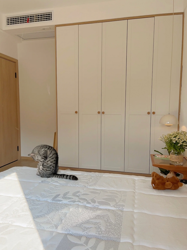 墻面:墻面選擇大白墻,沒有護墻板,沒有電視背景墻,簡簡單單就是最好搭配的樣子。